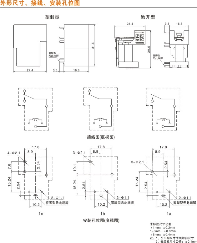 觸點形式繼電器常開或常閉(常見4、6只腳)、轉換(常見5只腳或8只腳)
