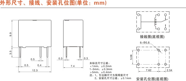 尺寸要求繼電器的體積:長、寬、高