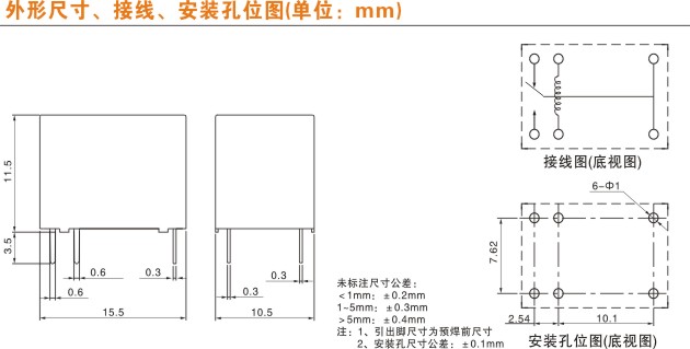 觸點形式繼電器常開或常閉(常見4、6只腳)、轉(zhuǎn)換(常見5只腳或8只腳)